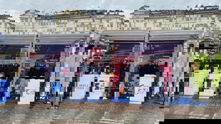 Durante l’attività di stand sono stati distribuiti gadget ai partecipanti e omaggiati ghiaccioli di color rosa al gusto pesca, ancora una volta del colore della corsa, stimolando l’interesse e invitandoli a sperimentare la proposta interattiva. A Torino lo stand ha posto particolare attenzione al tema della sostenibilità grazie ad attività disponibili per tutti tra giochi per i più grandi e per i più piccoli, capaci di produrre energia pedalando e di capirne il consumo.